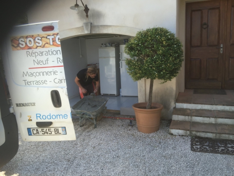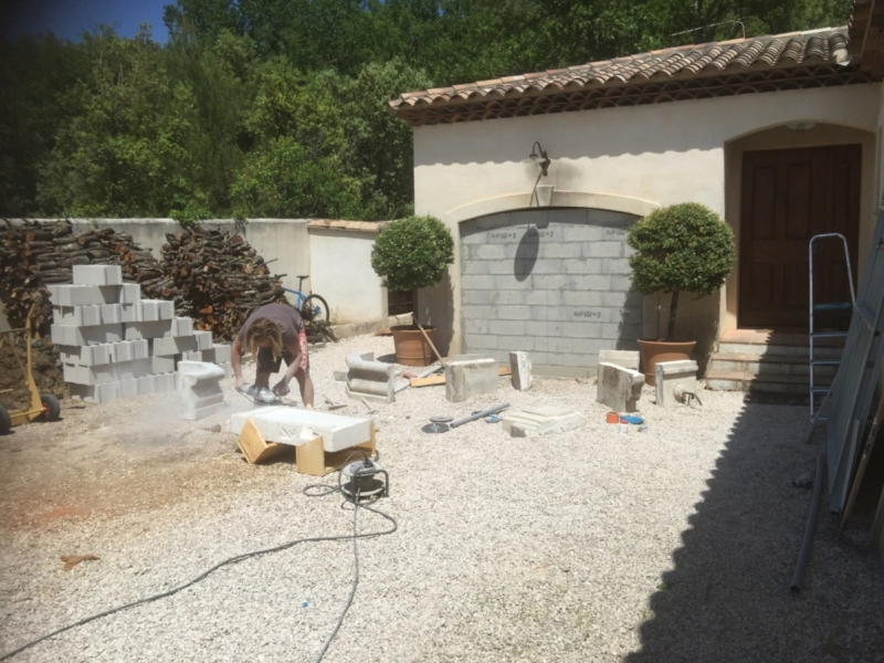 Nous avons également fermé à l’aide d’un mur en parpaing une ouverture dans un mur. Ceci a permis de créer une nouvelle pièce close pour la maison. Sur l’extérieur, afin de décorer ce nouveau mur, nous avons déplacé une ancienne fontaine avec bassin. Notre expertise en taille de pierre nous ayant permis de découper et replacer proprement cette fontaine.