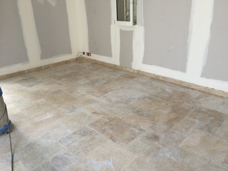 En ce qui concerne l’aménagement intérieur, il nous a également été confié. De ce fait, nous avons procédé à l’isolation complète des agrandissements à l’aide de panneau en doublage collé. Ensuite, nous avons effectué la pose de travertin sur les sols. Nous nous sommes également chargé de la réfection d’une ancienne cheminée, dans laquelle nous avons intégré une nouvelle cheminée électrique plus moderne.