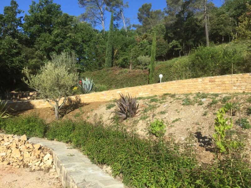 Sur ce chantier situé à Rocbaron dans le département du Var, nous avons été choisis pour effectuer des travaux de maçonnerie générale incluant la construction d’un mur de soutènement pour agrandir l’espace de vie de la terrasse.